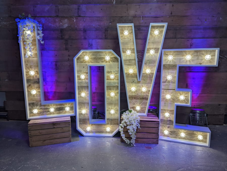 Create a stunning display for your special day with our premium 4ft light up "WUSTIC" LOVE letters. ✨ Perfect for adding some elegant sparkle to your dance floor or just lighting up the room with captivating charm. A combination of Eligent White suround and Rustic Inlayed wood. They also provide an awesome backdrop for capturing those all-important photo opportunities with your family and friends. 📸