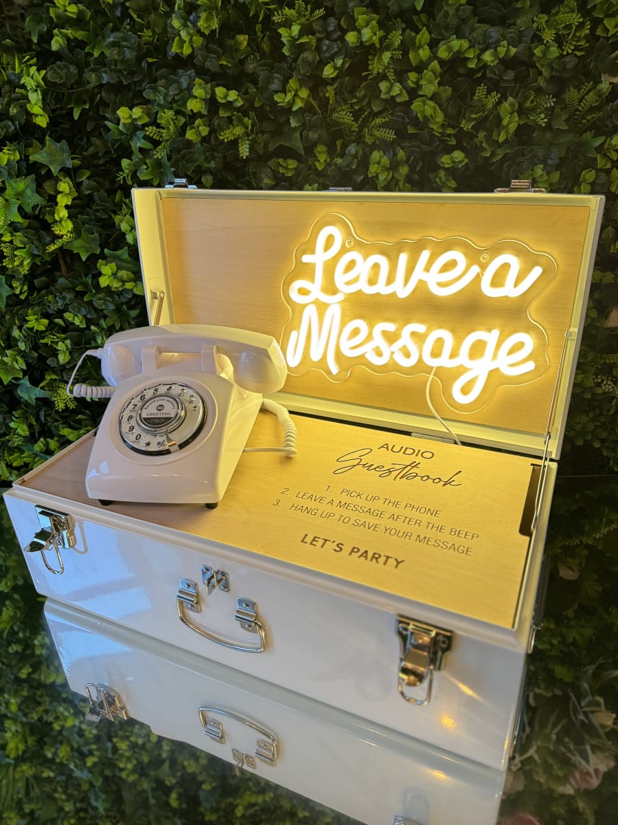 Introducing the Audio Guest Book, the perfect way to capture heartfelt messages from your wedding guests that you can cherish for years to come. This unique guest book allows your friends and family to leave personalized audio messages, creating a truly memorable keepsake of your special day. Also avalable with a stunning hand crafted traditional Phone Table.