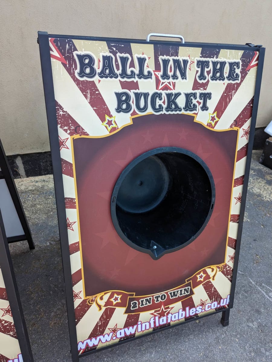 Our Ball in the Bucket Game is available for hire in Weston-Super-Mare, Portishead, Bristol, Bath, Taunton, Clevedon, Bridgwater, Newport, and surrounding areas. It's a versatile game that can be set up indoors or outdoors, making it suitable for a wide range of venues and occasions.